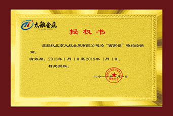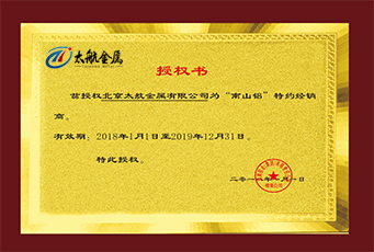 南山鋁業(yè)特許經(jīng)銷商證書 西南鋁業(yè)特許經(jīng)銷商證書