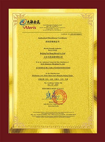 愛勵A(yù)leris華北地區(qū)獨家代理商證書